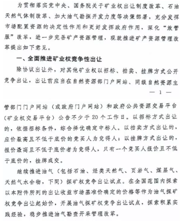 重磅 | 自然资源部关于推进矿产资源管理改革若干事项的意见(试行)