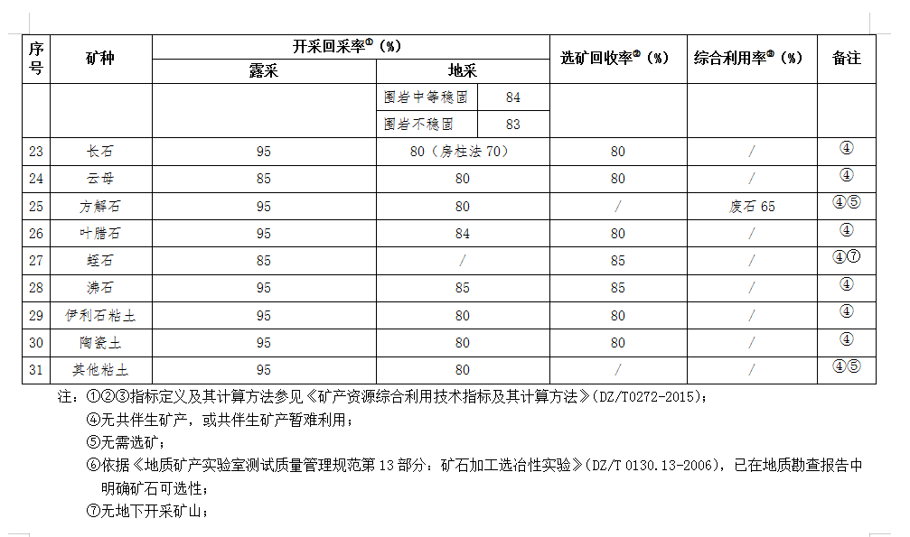 含钾岩石等矿产资源合理开发利用“三率”最低指标要求(试行).docx
