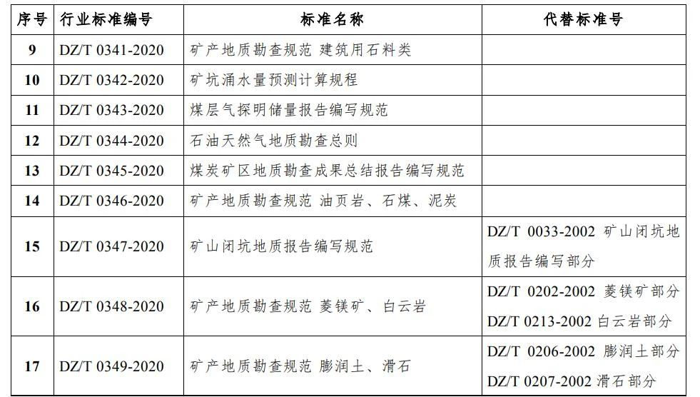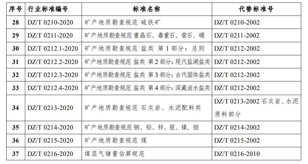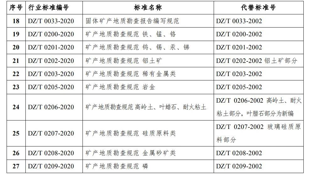 自然资源部发布《固体矿产勘查概略研究规范》等46项行业标准的公告