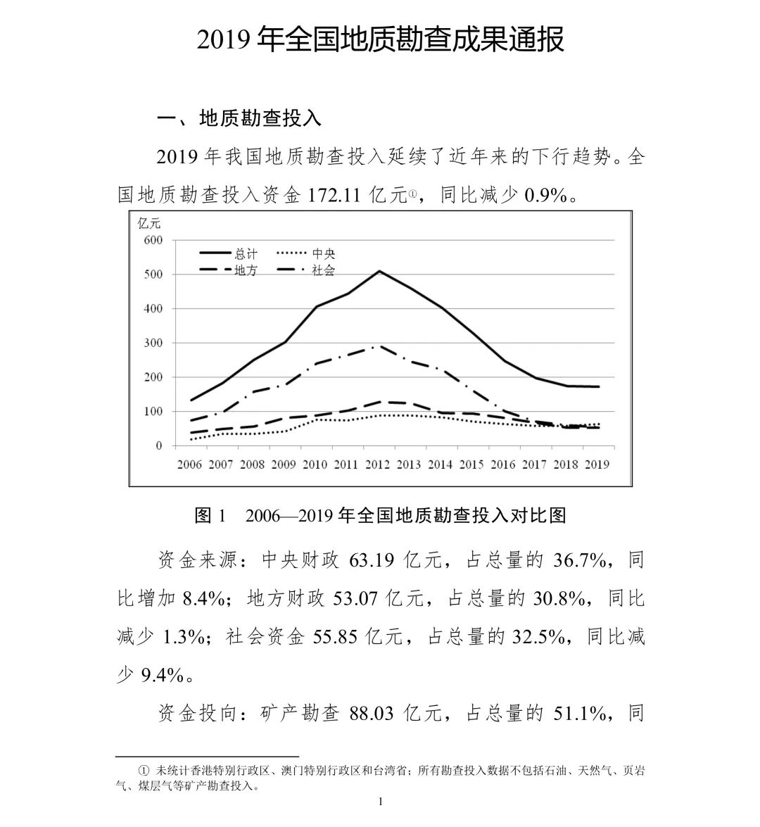 自然资源部办公厅关于印发《2019年全国地质勘查成果通报》的函